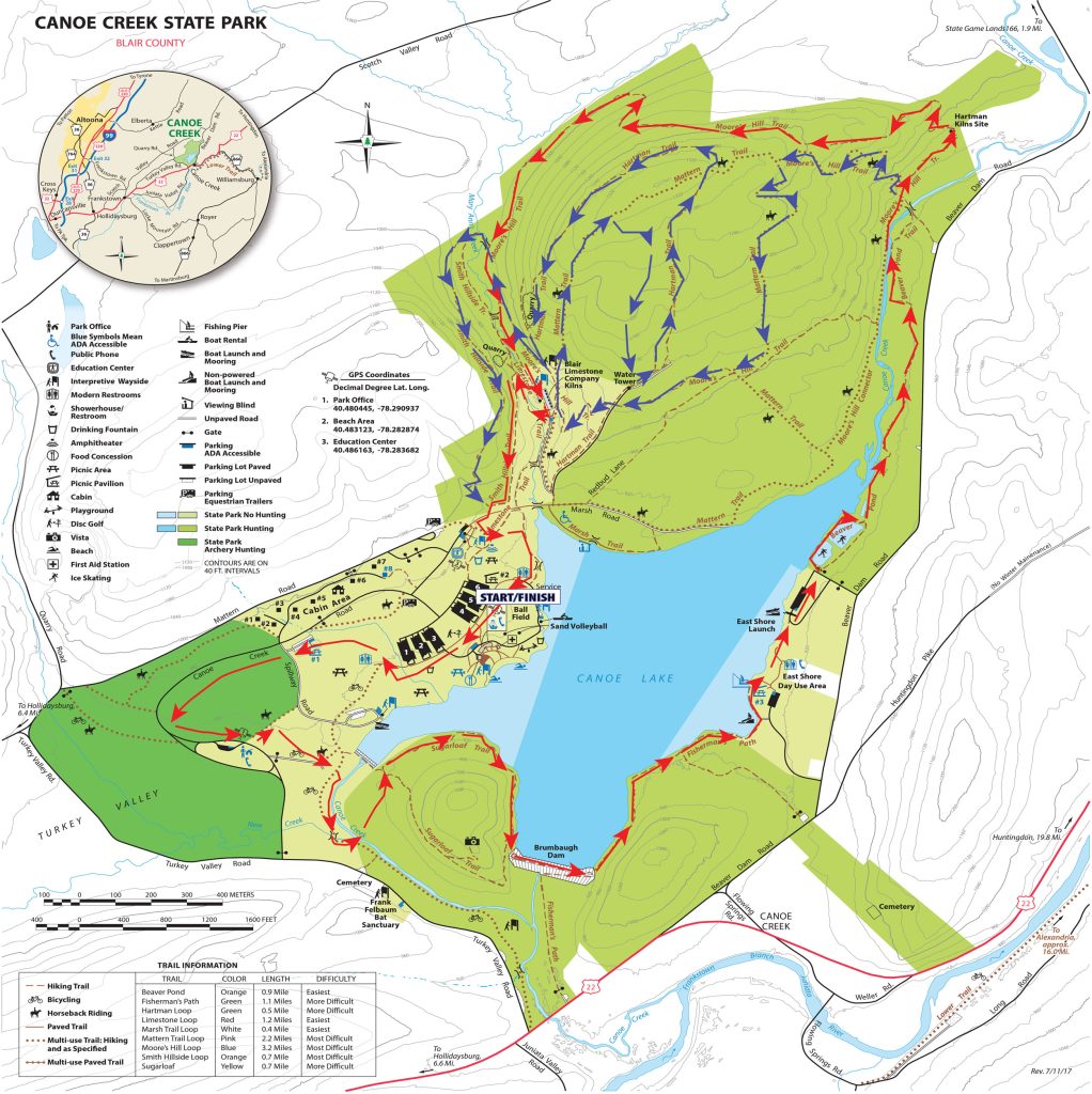 Blue: The blue course is the additional mileage for the long course runners do a second loop. They will depart the previous course at the Canoe Creek Stream Crossing.